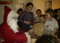 -Vous par exemple, vous me semblez bien sage. Ah non, je nai pas ma hotte, ni mes cadeaux, ni ma barbe. Je vais chercher tout ça. Attendez moi bien tranquillement. Surtout ne partez pas! Et surtout restez sages. Je reviens.