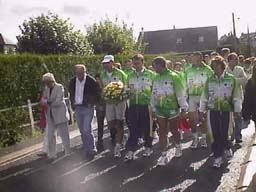 Les coureurs vont au cimetière pour poser des fleur sur la tombe de Franck. |