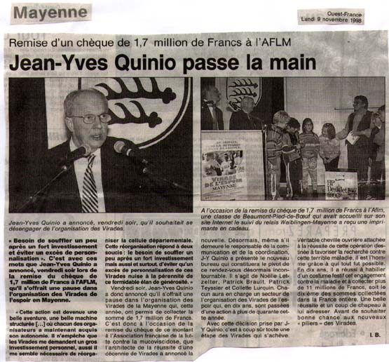 Article du journal Ouest France le lundi 9 novembre 1998