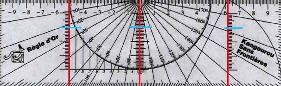 - On pose la règle d'or sur un des deux traits de
