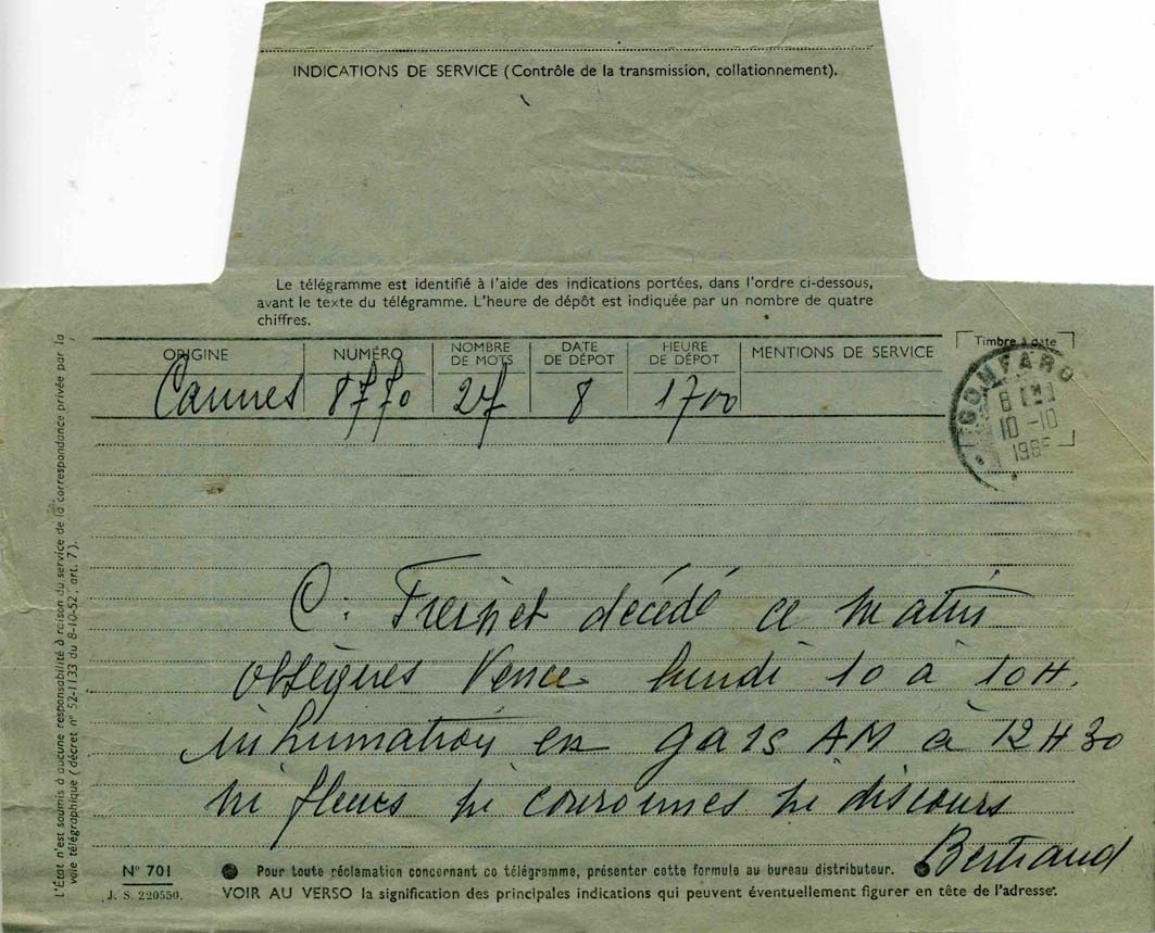 - Freinet nous a quittés le 8 octobre 1966.