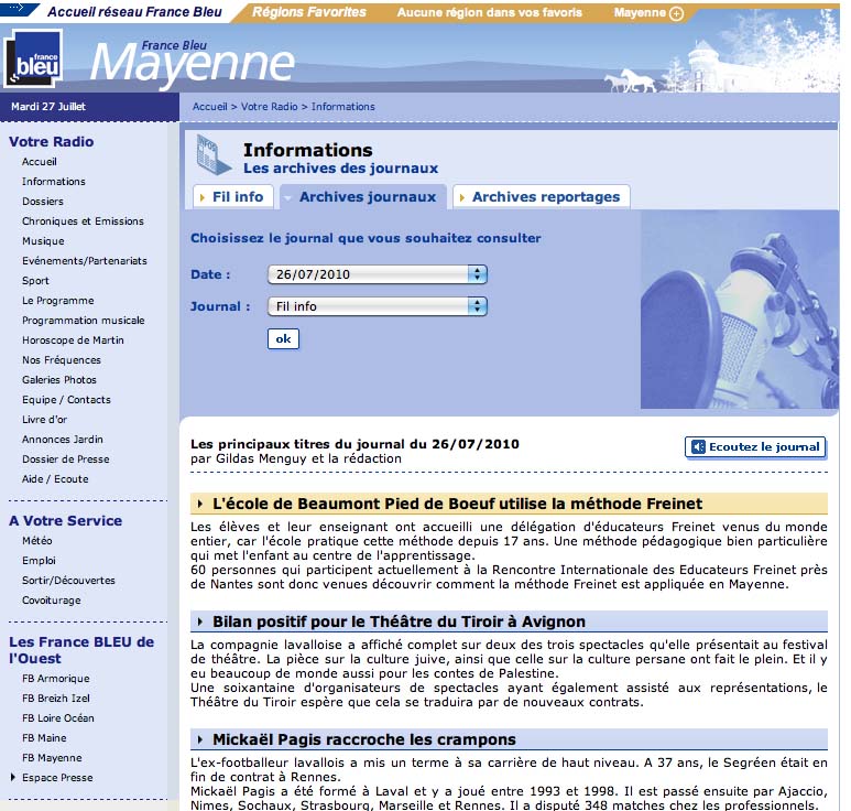 - http://sites.radiofrance.fr/chaines/france-bleu/global_ramgen.php?tag=Mayenne&sound=260710JOURNAL.rm