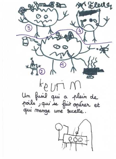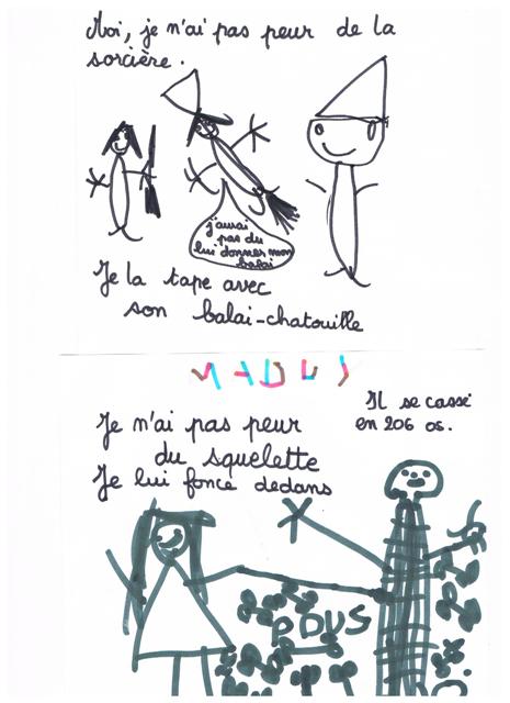dessiner ce qui leur faisait peur avec quelquechose de rigolo qui